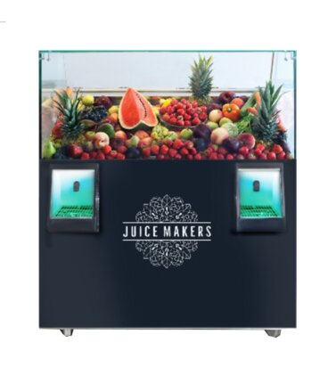 This one is a cooling counter with 2 juicers, integrated, so an in-store real juice bar in your location. It comes with a fully operational and customer-friendly quality and service program; including menu, selected fruits and vegetables and dispenser.